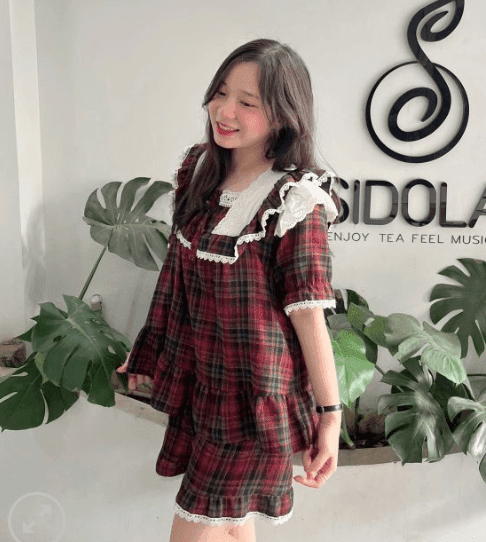 Pijama Cổ Bèo Công Chúa Cổ Bèo Phối Ren Mát Caro Đỏ Đen Dễ Thương