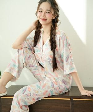 Pyjama Họa Tiết Form Cánh Dơi Chất Liệu Lụa Satin